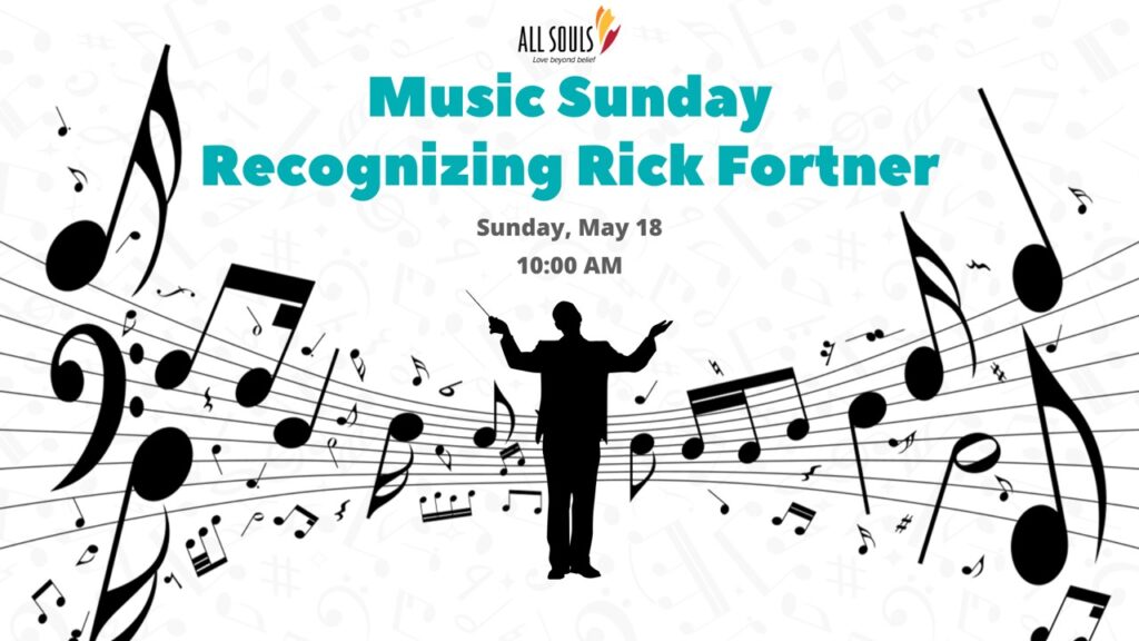 For 26 years, Rick Fortner has helped shape the heart of All Souls through music, creativity, and deep care for our community. As Rick prepares for retirement later this year, we invite you to join us for a special Music Sunday in his honor, on Sunday, May 18, 2025 at 10AM.