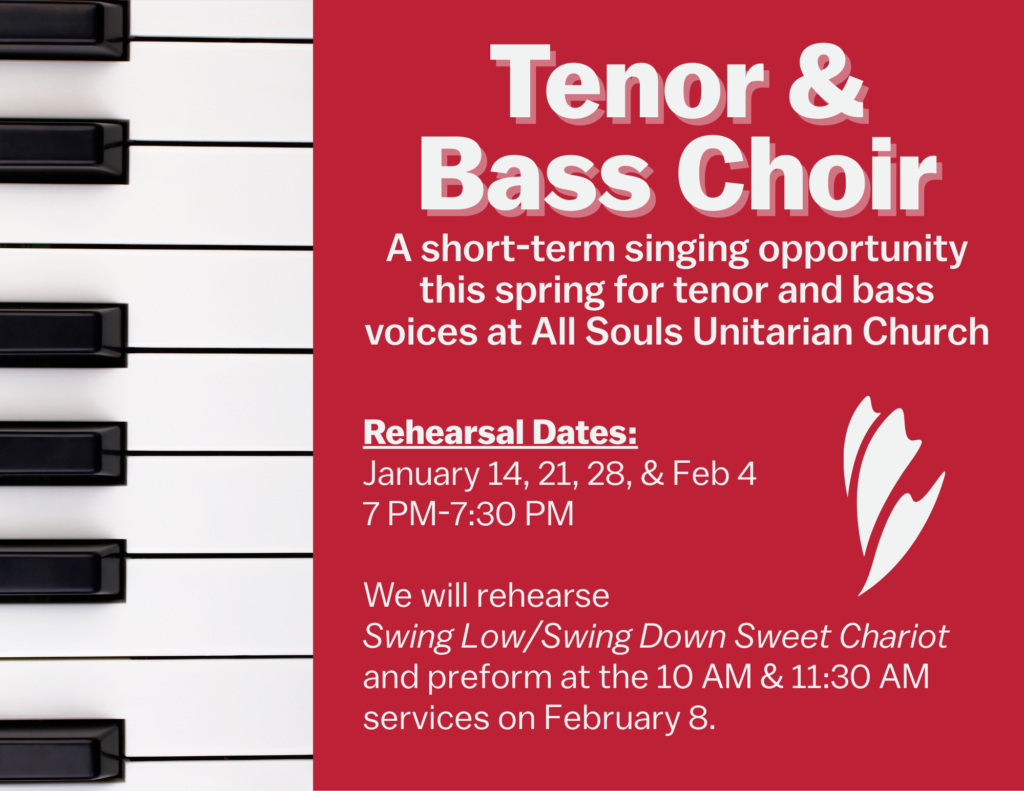 Short-term choirs are a low-pressure way to join All Souls music: you rehearse for four short sessions, then sing in worship at both services. It’s an easy on-ramp if you’re new, returning, or just ready to try.